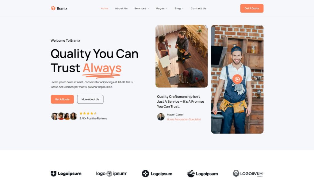 Aannemer- vastgoedonderhoud – home, over ons, diensten, portfolio, contact – KLM blauw –